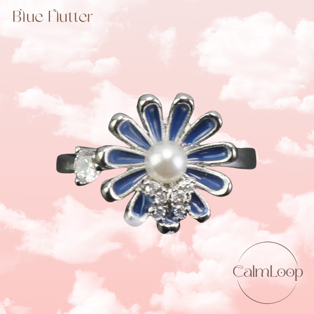 青い花に蝶のモチーフがついたおおぶりで可愛らしいデザイン。